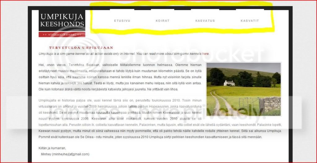 Järkyttävän upea ulkoasu. <3_<3 Tosin itse ehkä vielä etusivulle laittaisin kessunkuvan ja koirat-sivulla on tainnut unohtua <br>-tagit kun nuo koirien nimet ovat tuolleen peräkkäin? (Osaan joo selittää..)