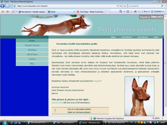en nyt kommentoi jokaista sivua erikseen, mutta tekstit ovat tosi sujuvasti kirjoitettuja, asiallisia ja kaikin puolin mainioita. kirjoitusvirheitä ei myöskään ole. tykkäsin enemmän noista vanhoista koirien sivuista (jotka vielä muutamilla on), mutta kyllä nuo uudetkin ihan kivoilta näyttivät. Zenitin koirat ovat jotain aivan uskomatonta, voisin varastaa ne kaikki itselleni!